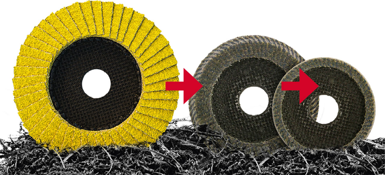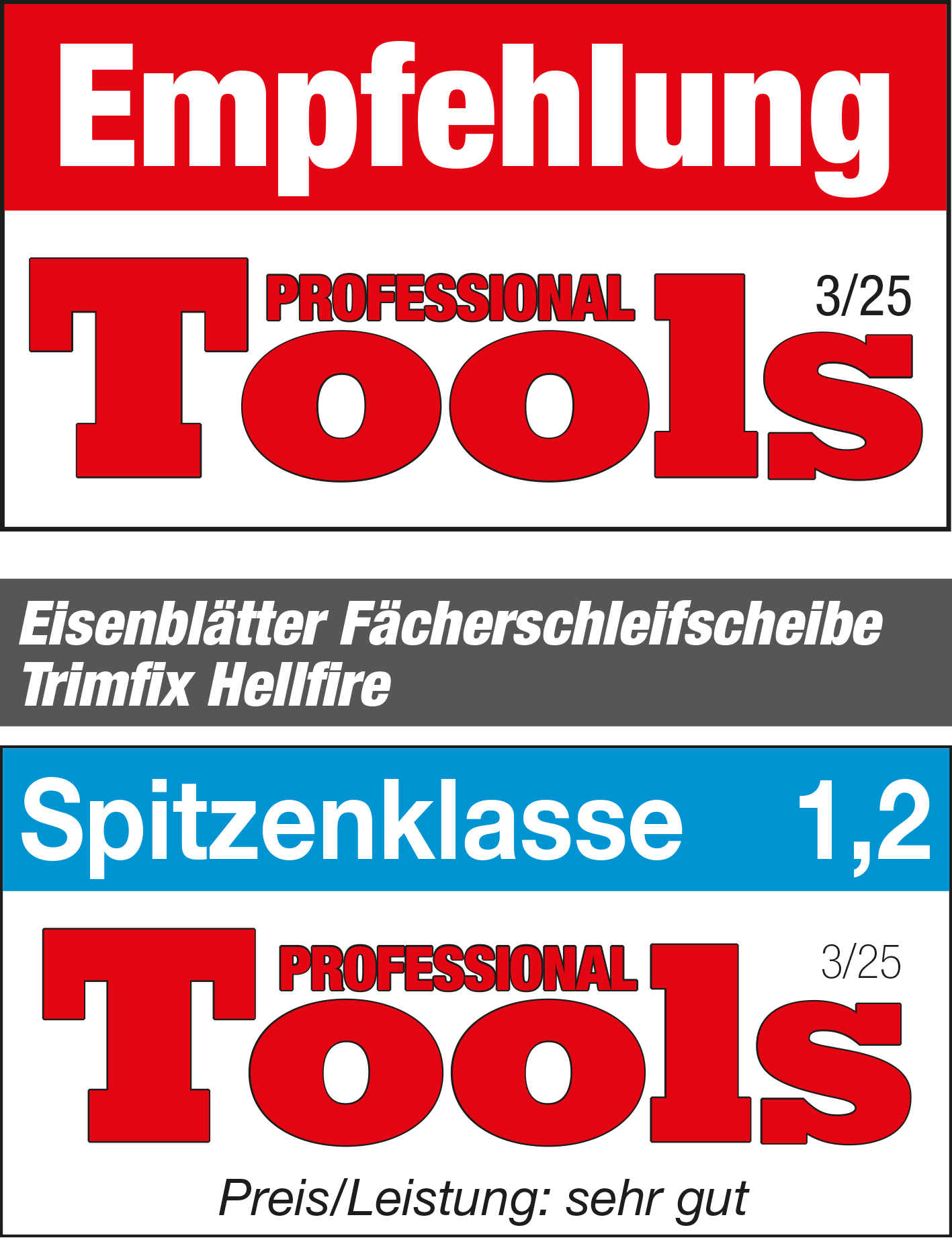 The TRIMFIX® HellFire® is one of the most modern and versatile flap discs in the world. Its unparalleled, innovative ceramic hybrid technology, enables it to machine any metal in record time with a single grit. It is user-friendly (no glass fibre components) and environmentally friendly (uses CO2-neutral natural fibre components). Working time and tool costs are halved – and all at an absolutely outstanding price-performance ratio.