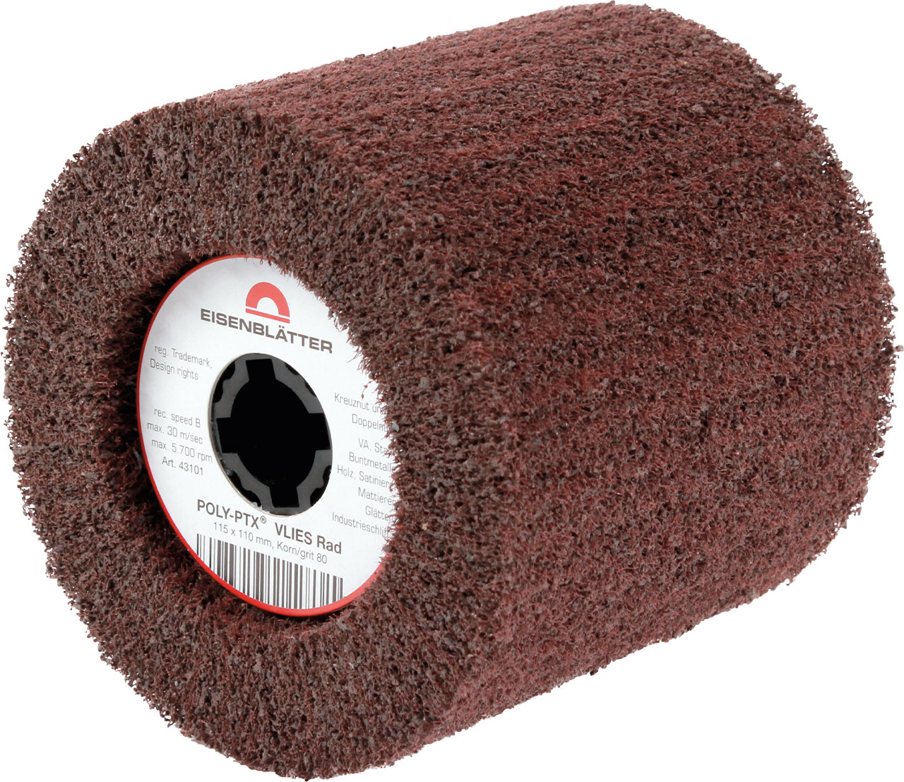With grain 60, 80 and 180 with a diameter of 115 mm you get a working width of 110 mm (fits all satin finishing devices). As a result, the clamping screw is countersunk in the wheel and you can grind up to the edge area.