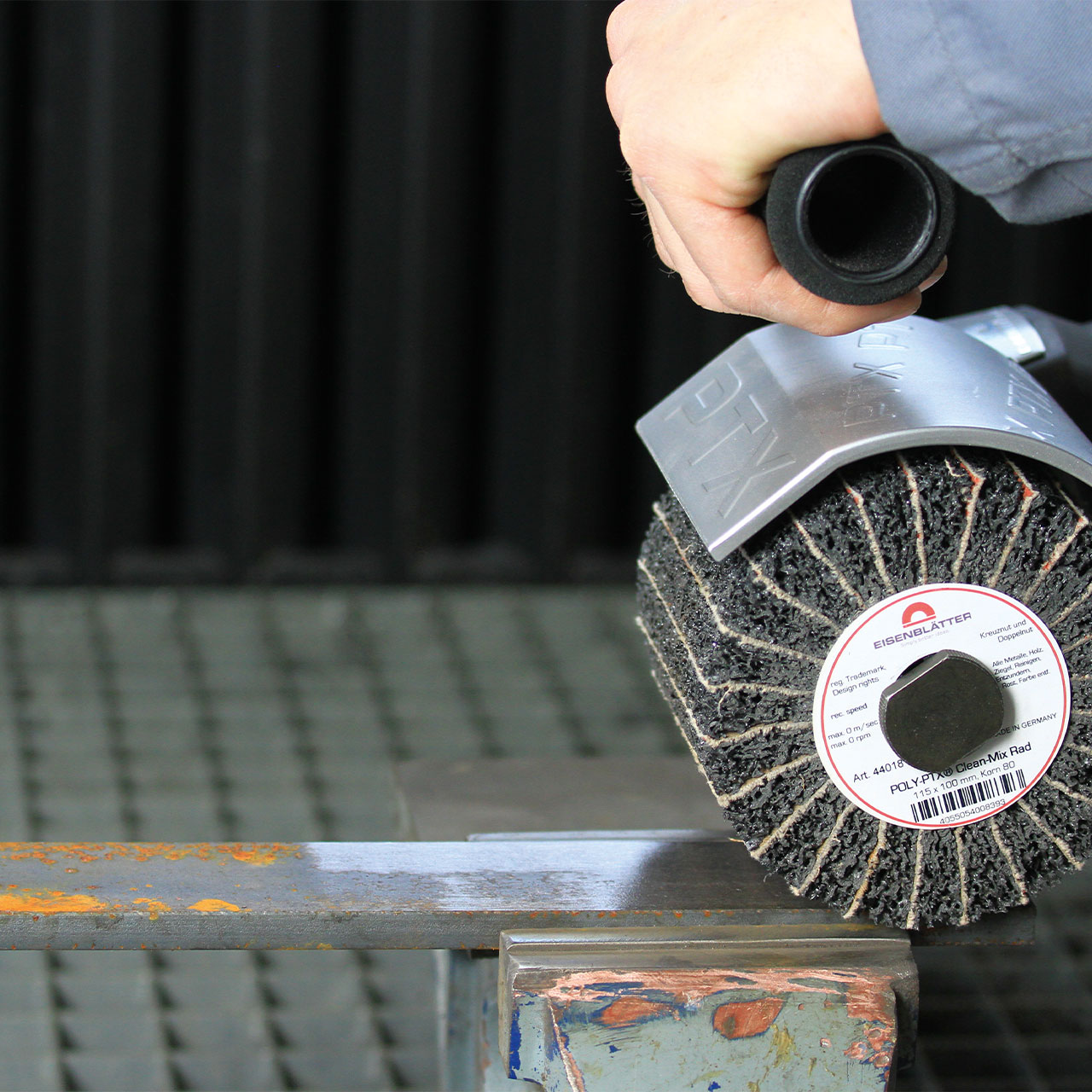 Due to the open, elastic fabric pores of the CLEAN material, the grinding wheel does not become clogged and achieves a “sandblasting effect” on metal.